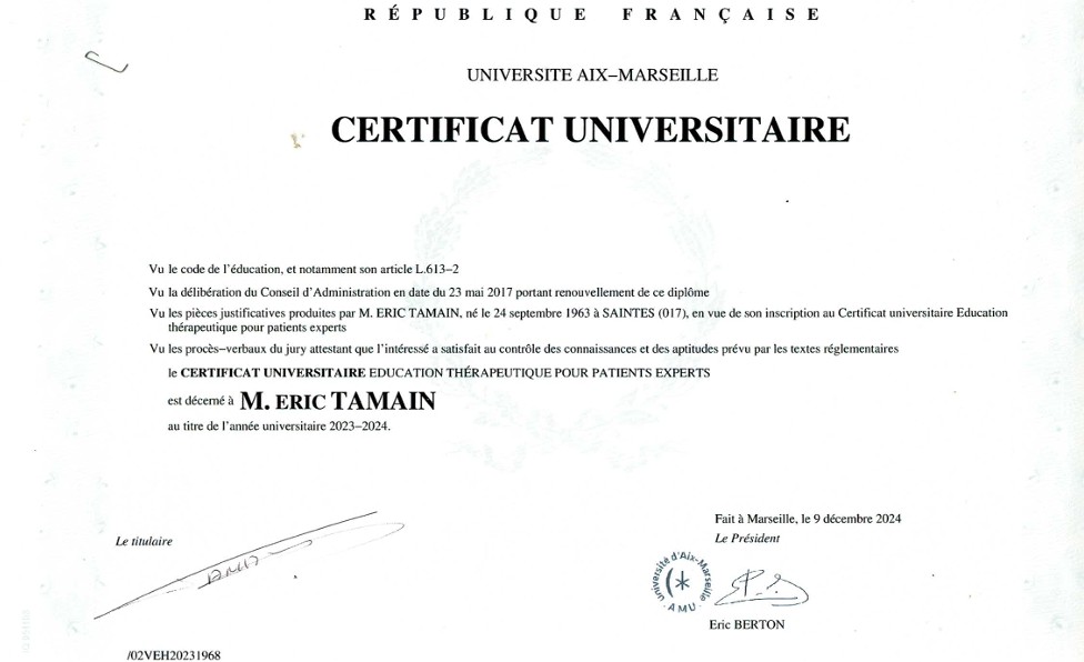 Tous titulaires du C.U. Patient Expert certifié ETP et du D.U. maladies chroniques, pour mieux vous accompagner
